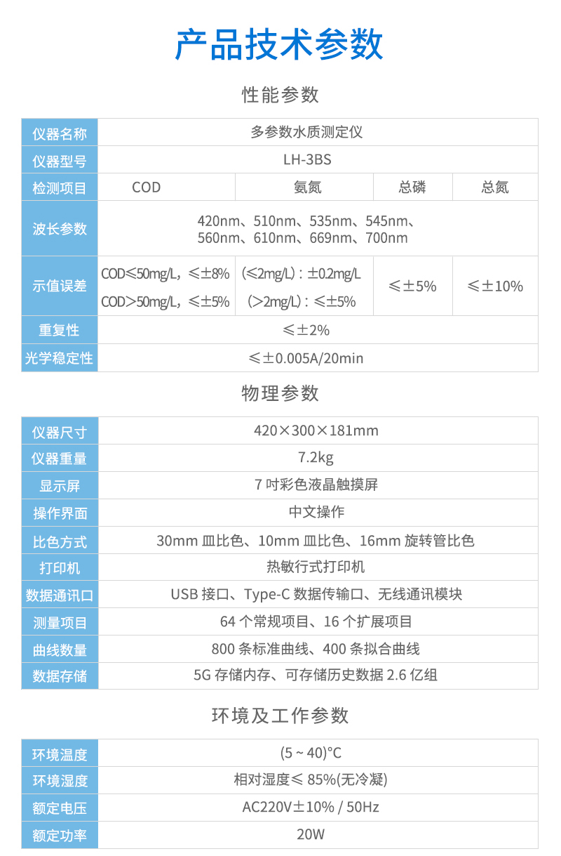 LH-3BS多參數水質測定儀COD氨氮總磷總氮重金屬無機鹽